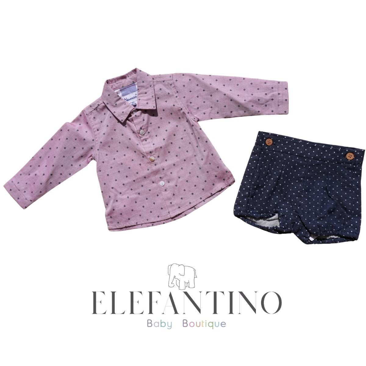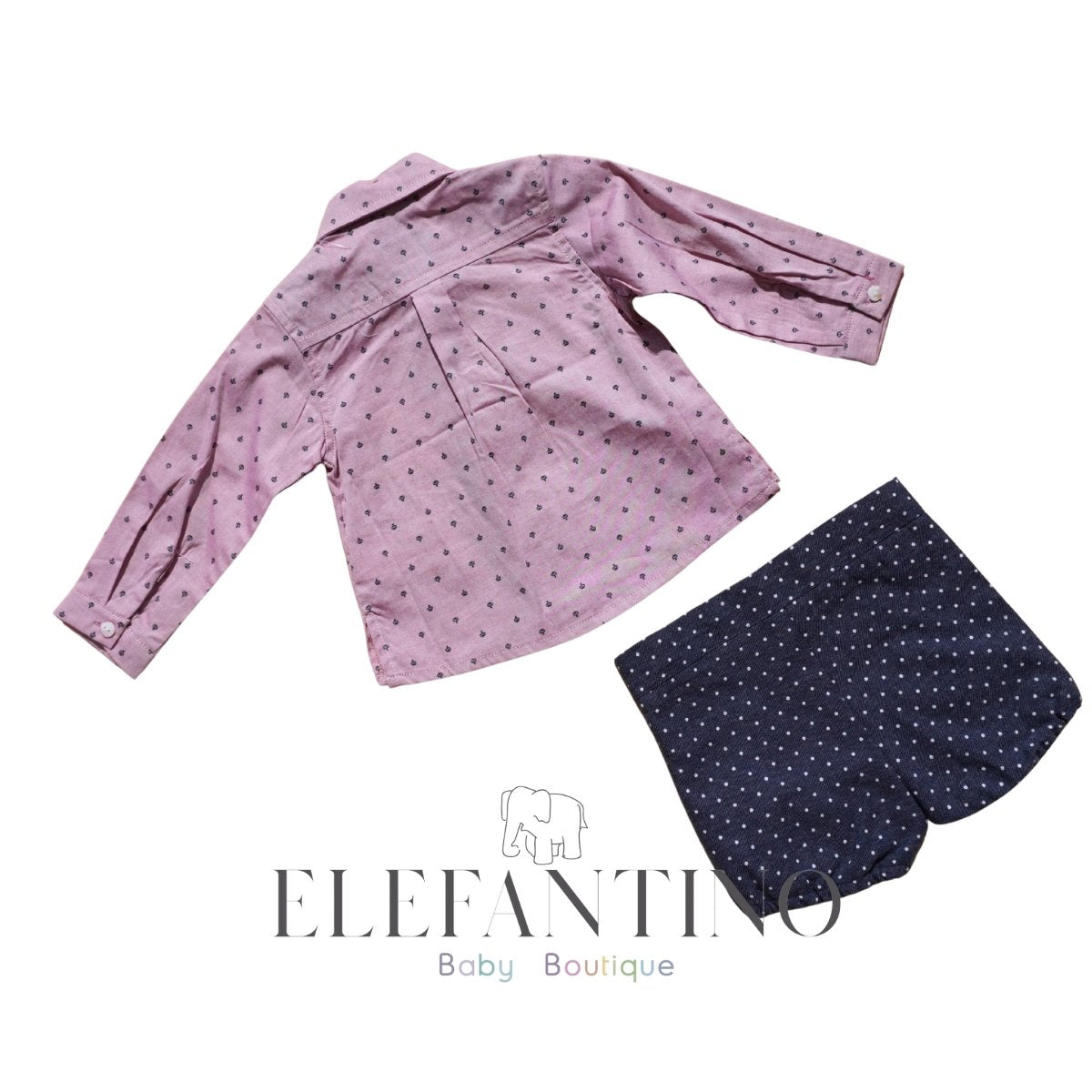 Conjunto que incluye camisa manga larga y short.